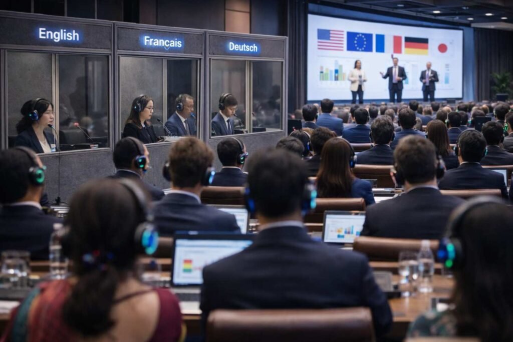 Events involving participants speaking multiple languages requiring accurate and reliable interpretation systems.