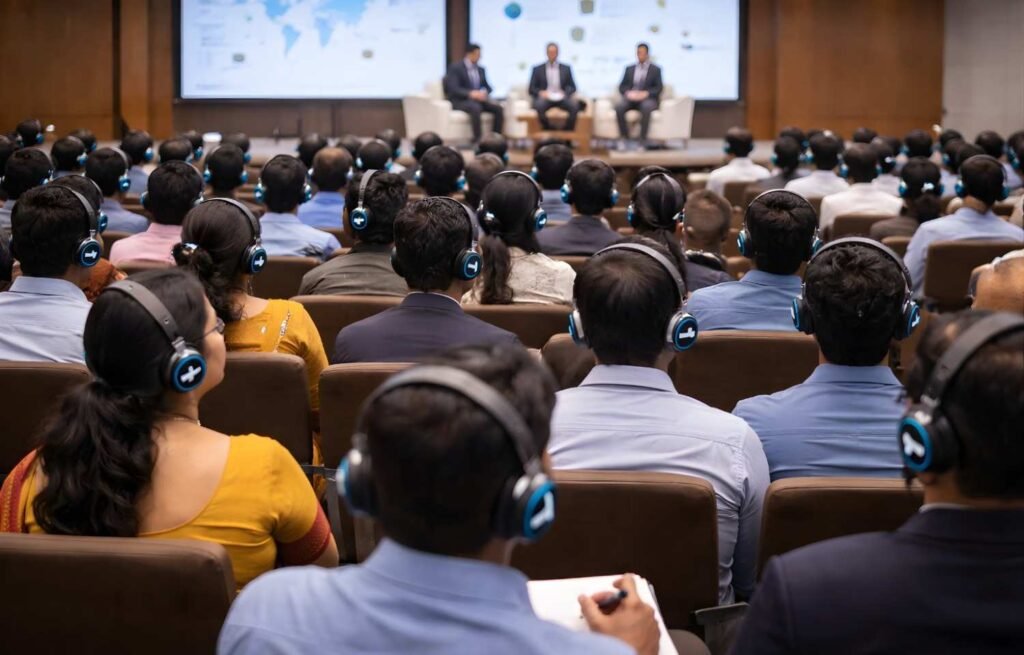 Multilingual conferences, seminars, and professional gatherings requiring clear audio and structured communication.
